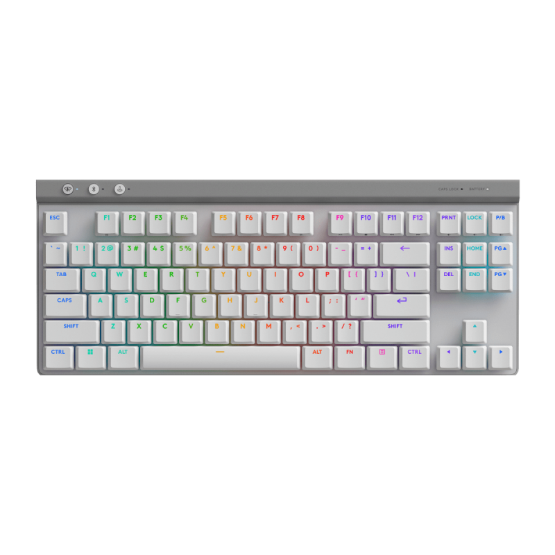 Teclado mecánico gaming inalámbrico Logitech G515 LIGHTSPEED White, de perfil bajo y diseño TKL, con conectividad LIGHTSPEED y Bluetooth, switches mecánicos de alta precisión, iluminación RGB LIGHTSYNC personalizable y construcción premium, ideal para máximo rendimiento y control en gaming.