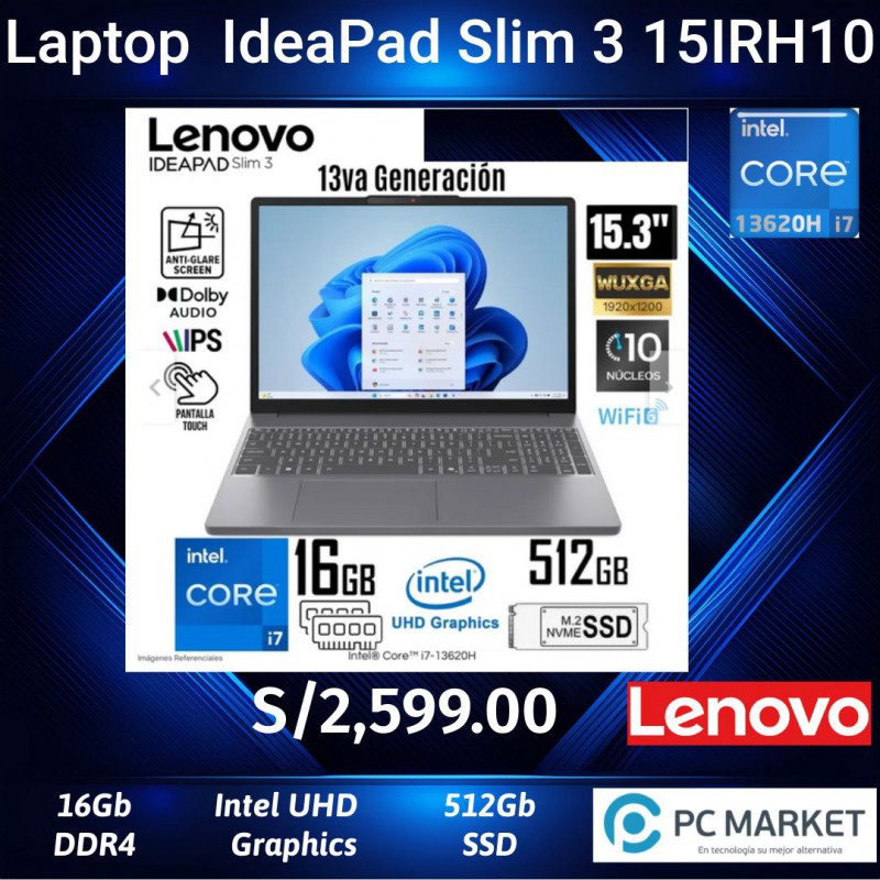 Lenovo IdeaPad Slim 3 15IRH10 15.3 Pantalla Táctil i7-13620H - 16GB - 512GB SSD